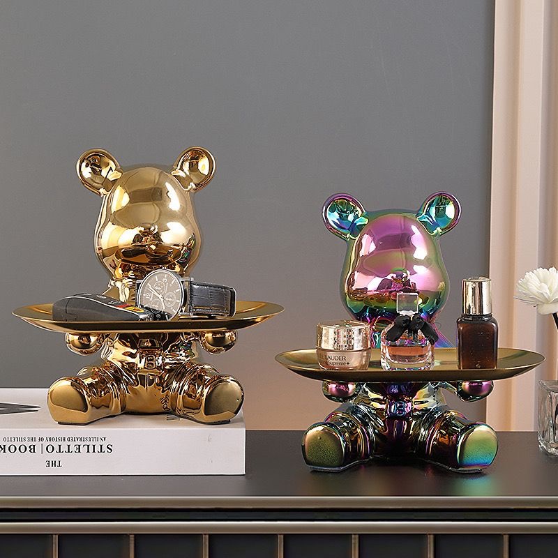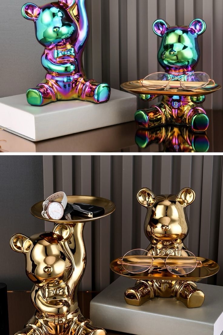 Add a touch of elegance to your space with our Bear Figurine Piggy BankFunctional, decorative, and perfect for storing items on the tray and saving money in style.