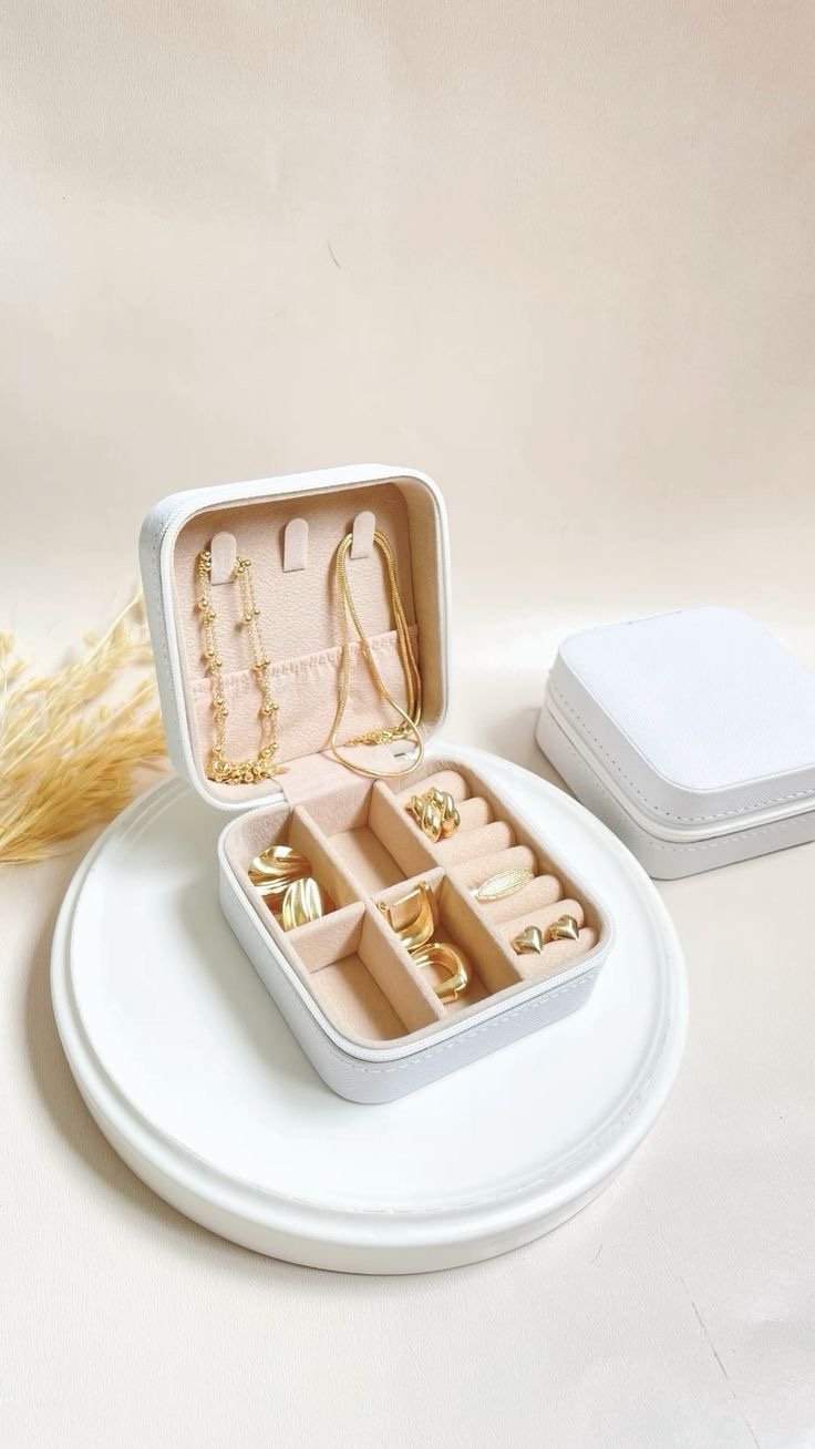 This stylish jewelry box Perfect for storing your favorite pieces, it’s got compartments for rings, earrings, and necklaces. Soft interior, sleek exterior, portable, and a compact design make it a must-have for any jewelry lover.